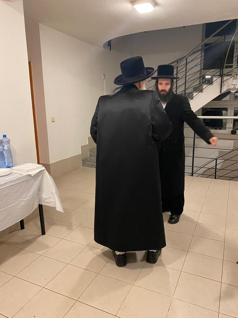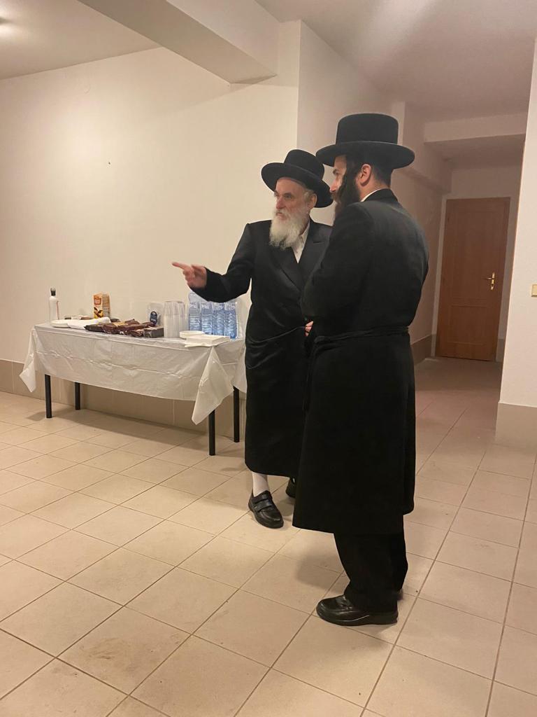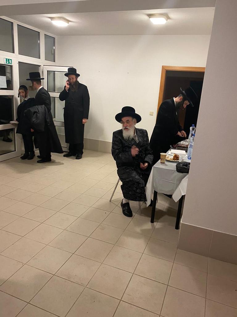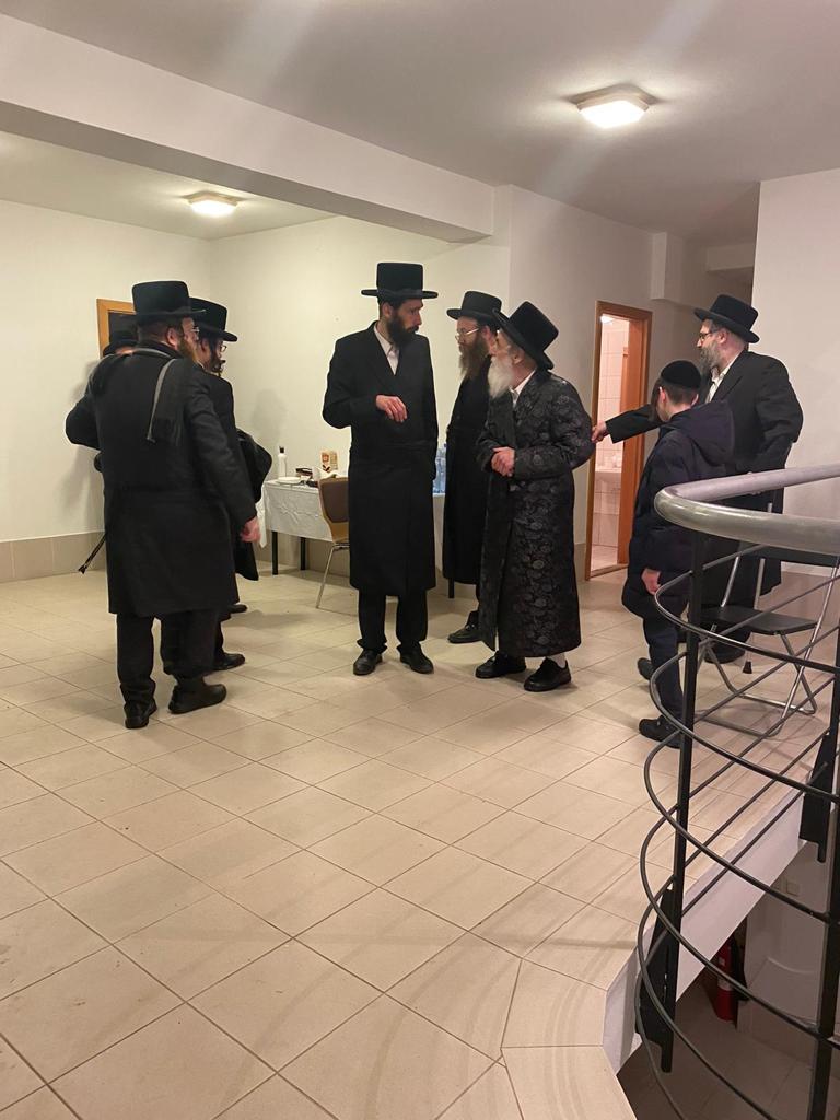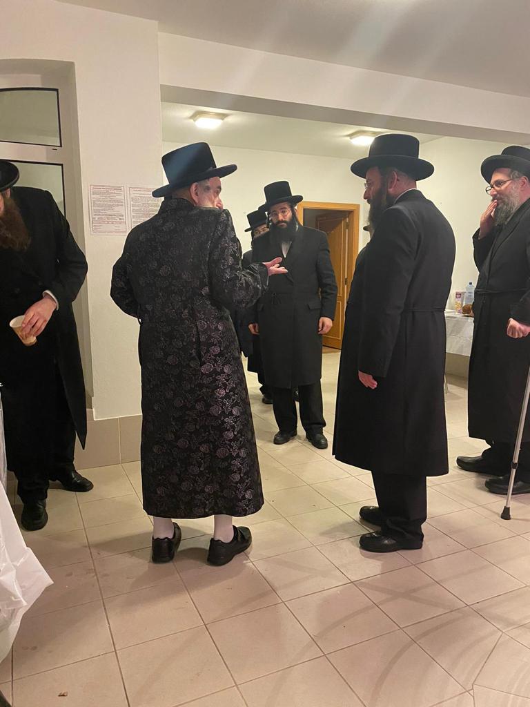 האדמו"ר מויזניץ שליט"א בביקור בהכנסת אורחים בעיר פרעשבורג (ברטיסלבה, סלובקיה) לאחר שהשתטח בתפילה שעות ארוכות על ציונו של מרן החתם סופר זי"ע עם קבוצה מחסידיו.