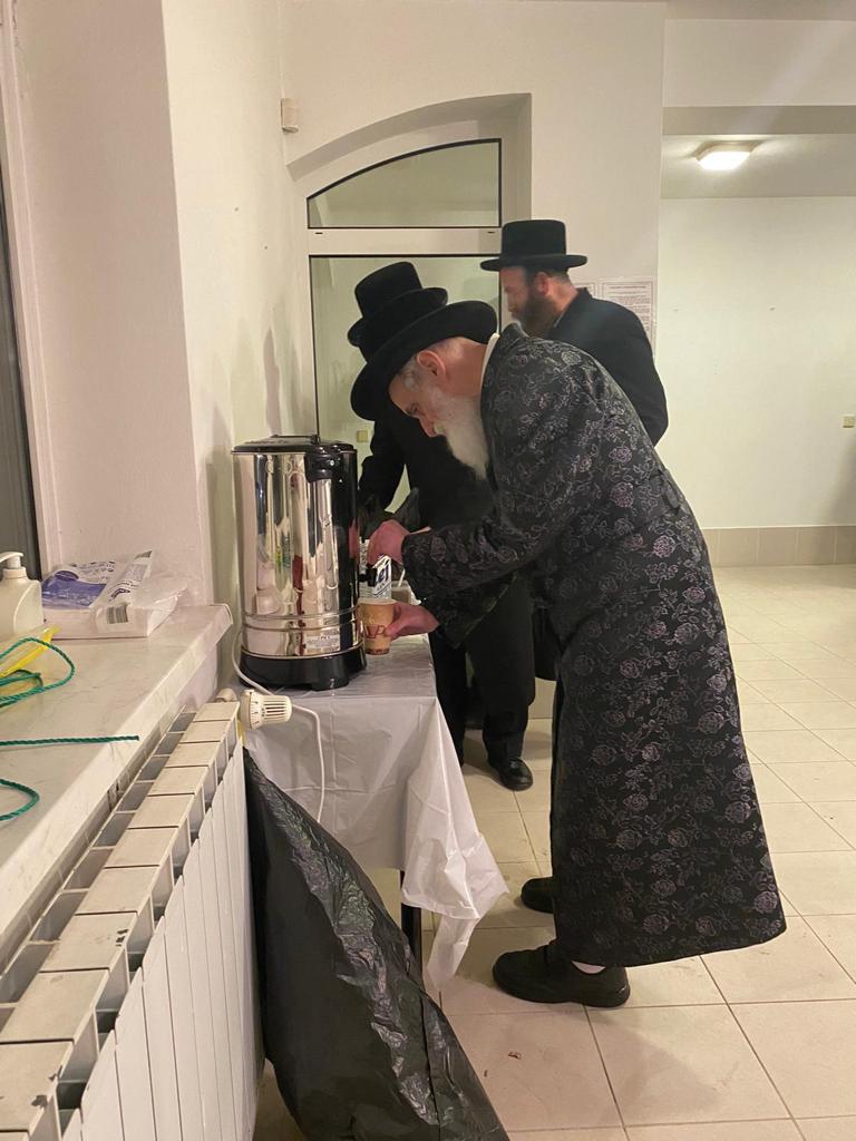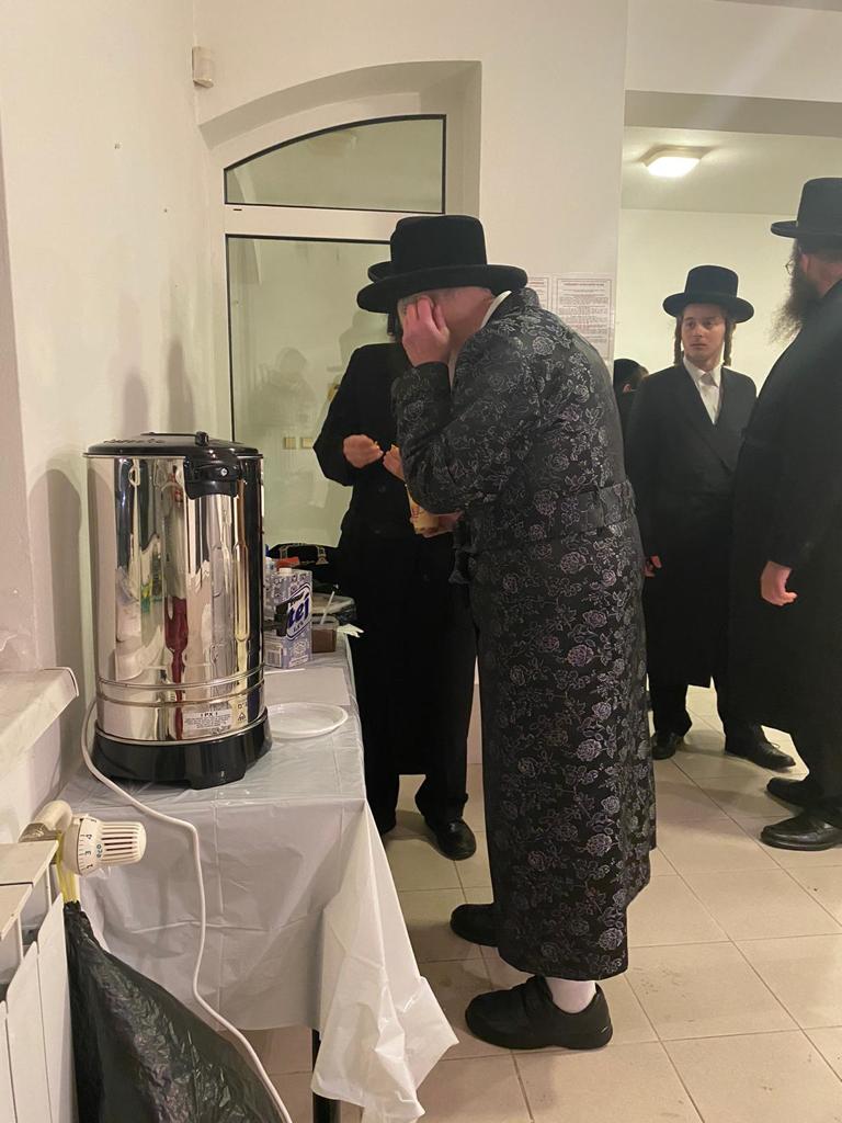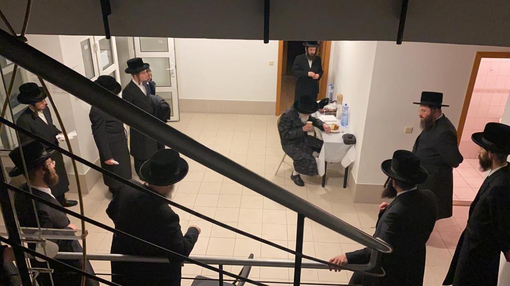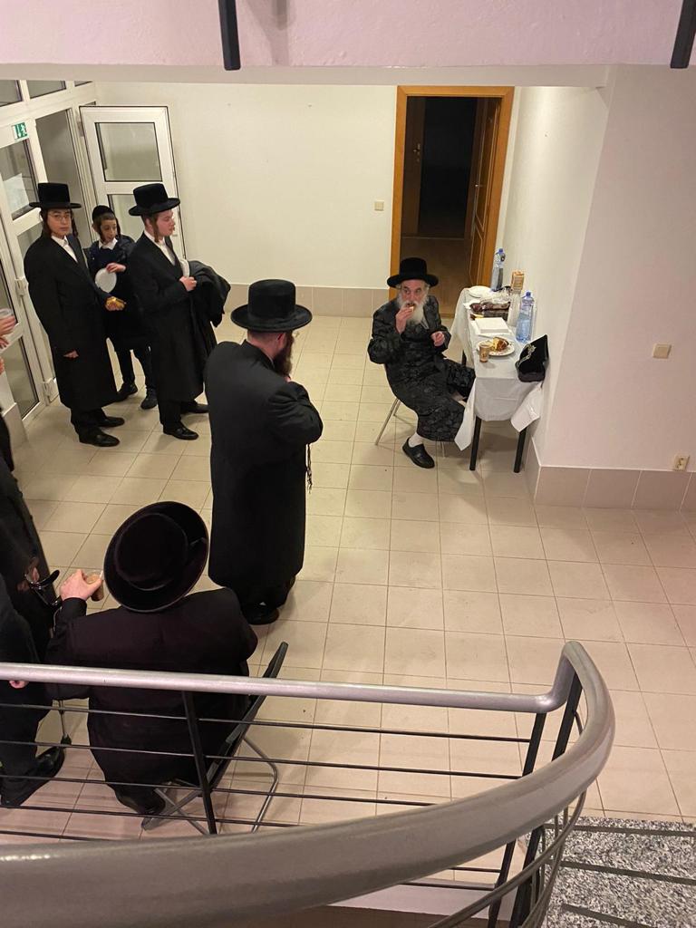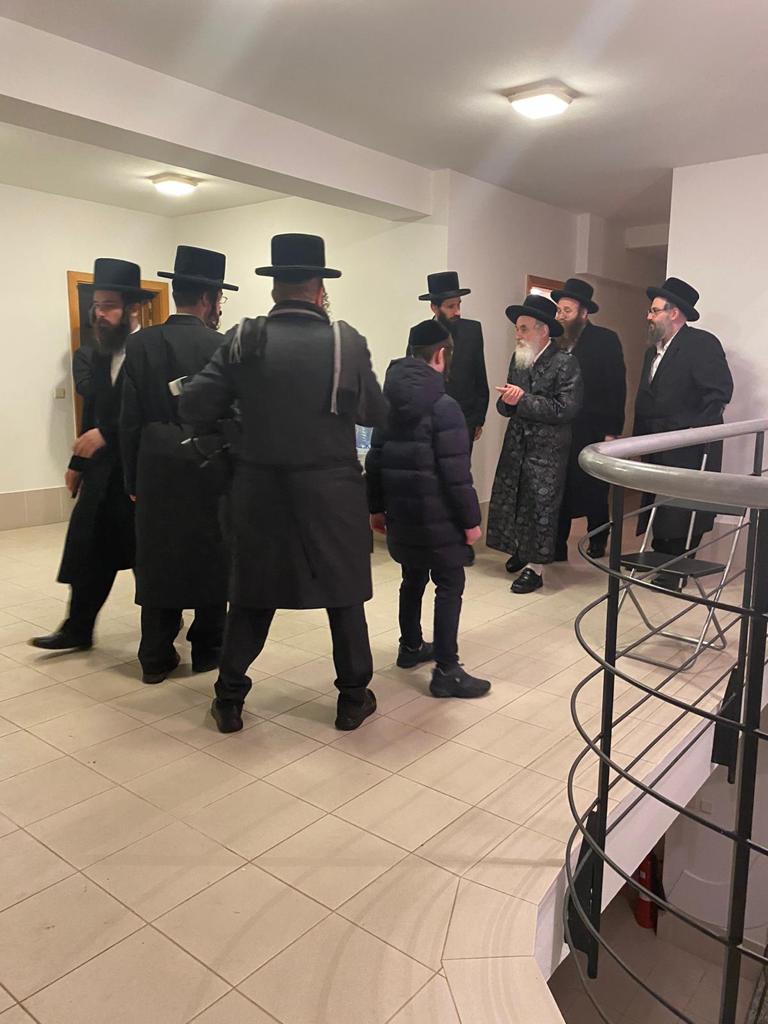 האדמו"ר מויזניץ שליט"א בביקור בהכנסת אורחים בעיר פרעשבורג (ברטיסלבה, סלובקיה) לאחר שהשתטח בתפילה שעות ארוכות על ציונו של מרן החתם סופר זי"ע עם קבוצה מחסידיו.